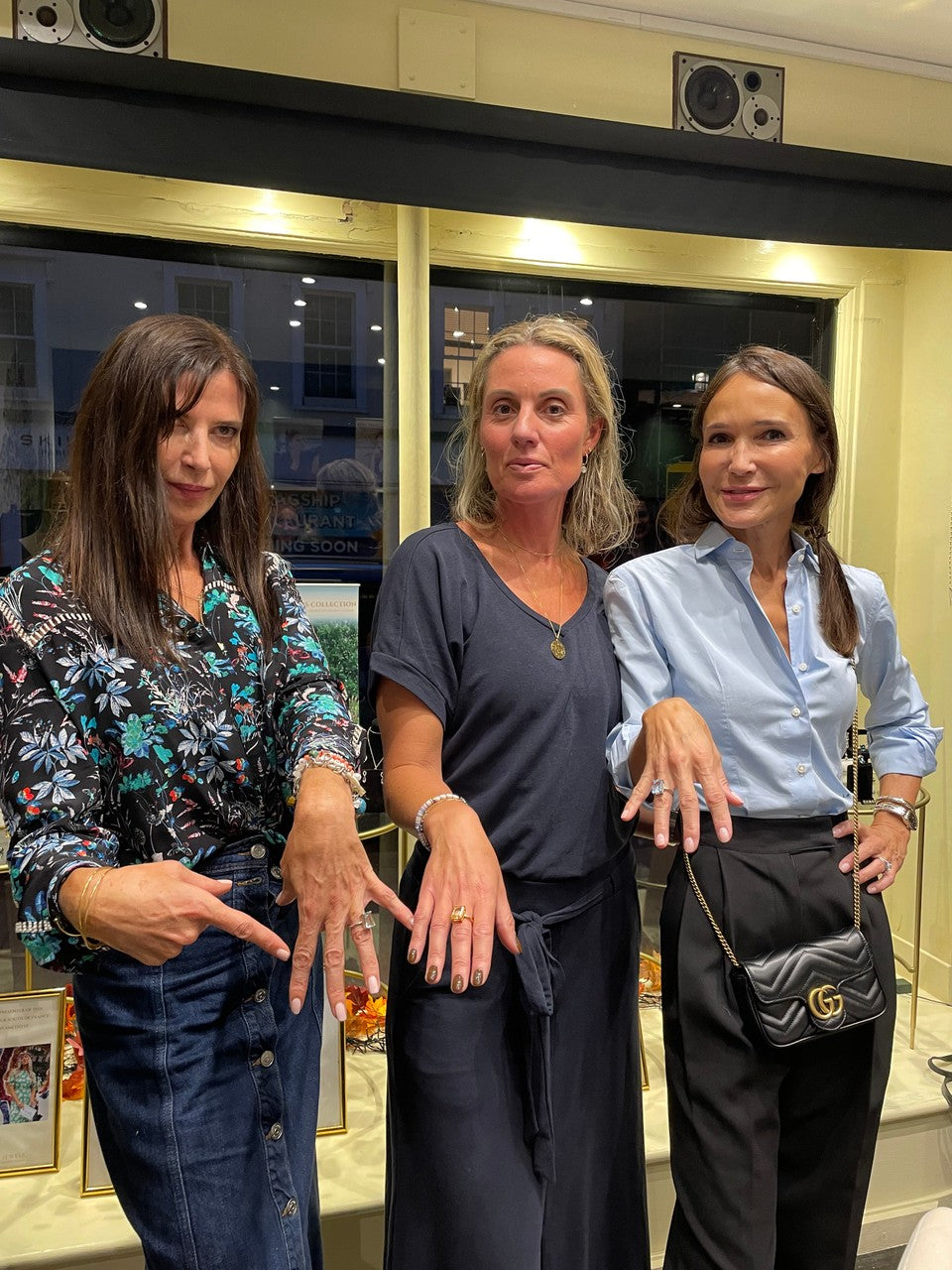 Ronni, TV Presenter and Comedian. Posing whilst wearing our South of France Silver Green Amethyst Cocktail Ring